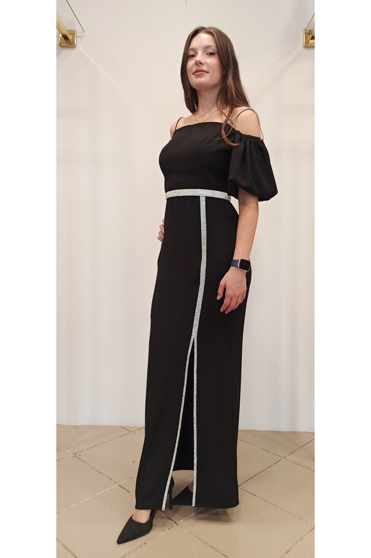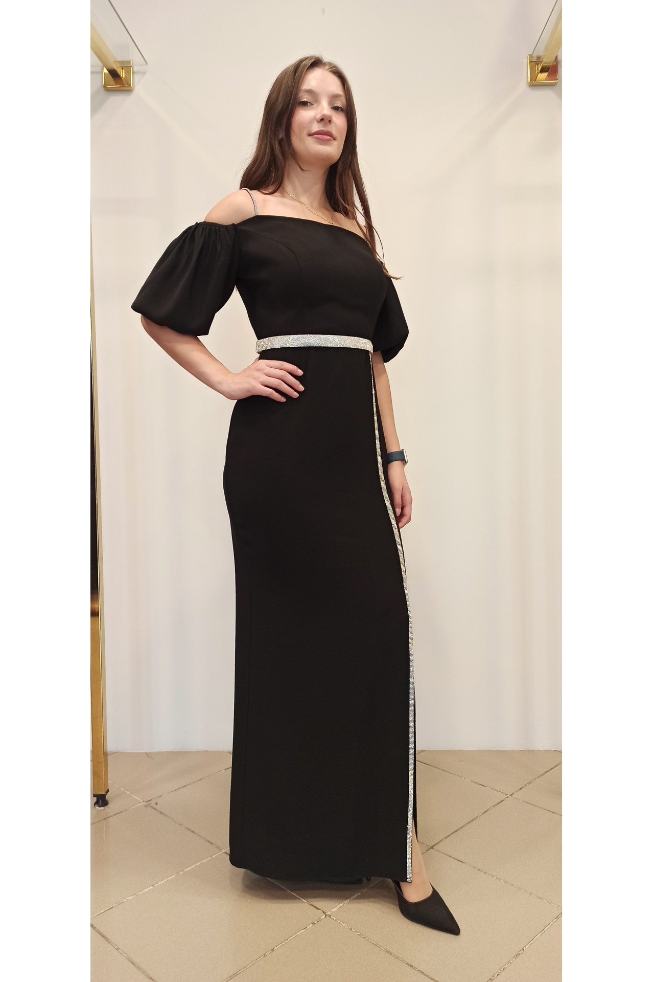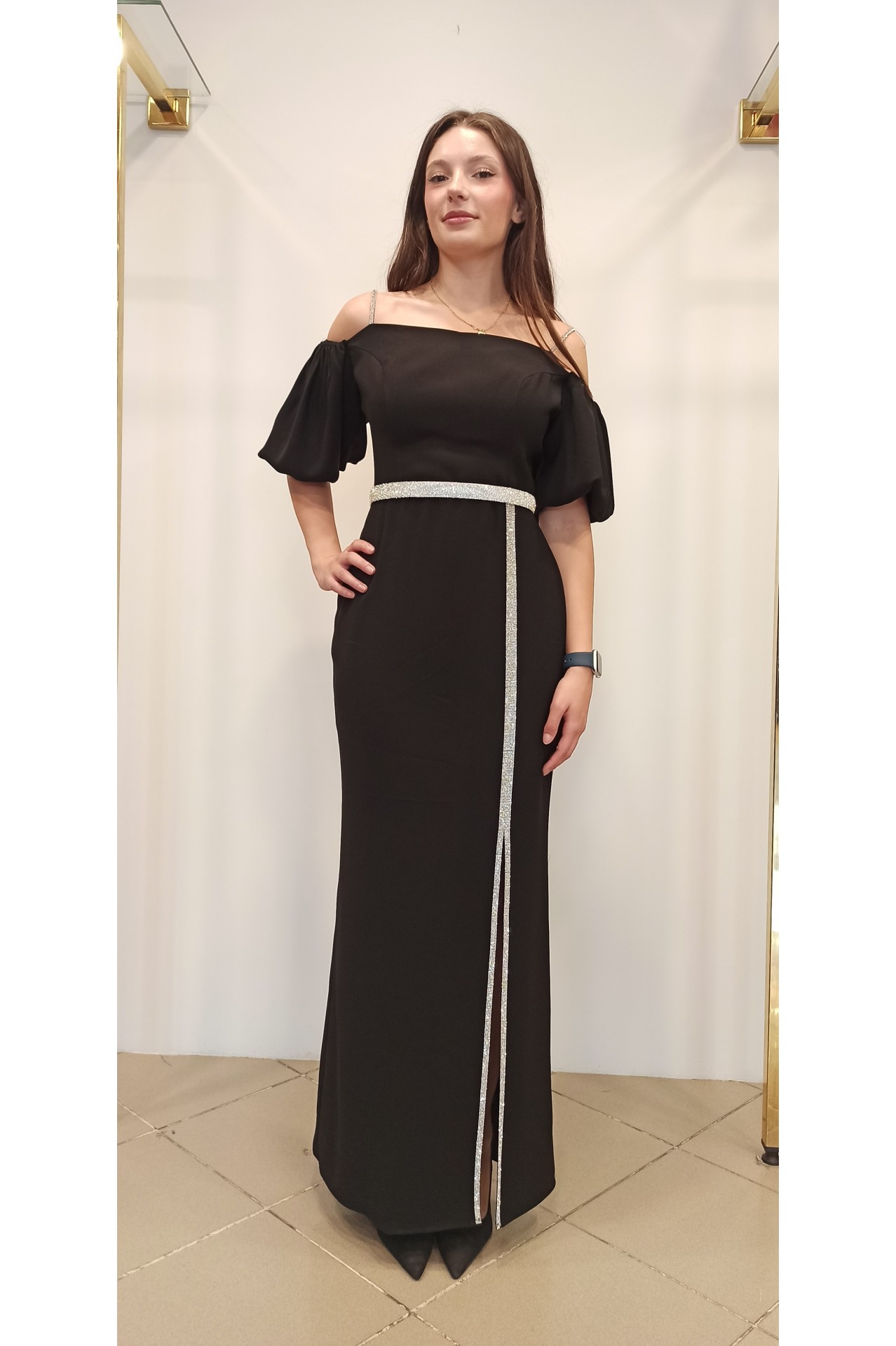 Ürün Özellikleri : Elbise kendinden hafif likralı krep kumaştan olup belden oturtmalı kalıbı ile bedeninizi sararken omuzdaki ve yırtmaçtaki şerit taşları ile süslenmiştir. Ayrıca belde Swarovski taşlı kemeri ile şık bir tasarım oluşturmaktadır. Balon kol özelliği ile zengin bir duruş sergilemektedir. Elbisenin İçinde örme jarseden astar vardır.