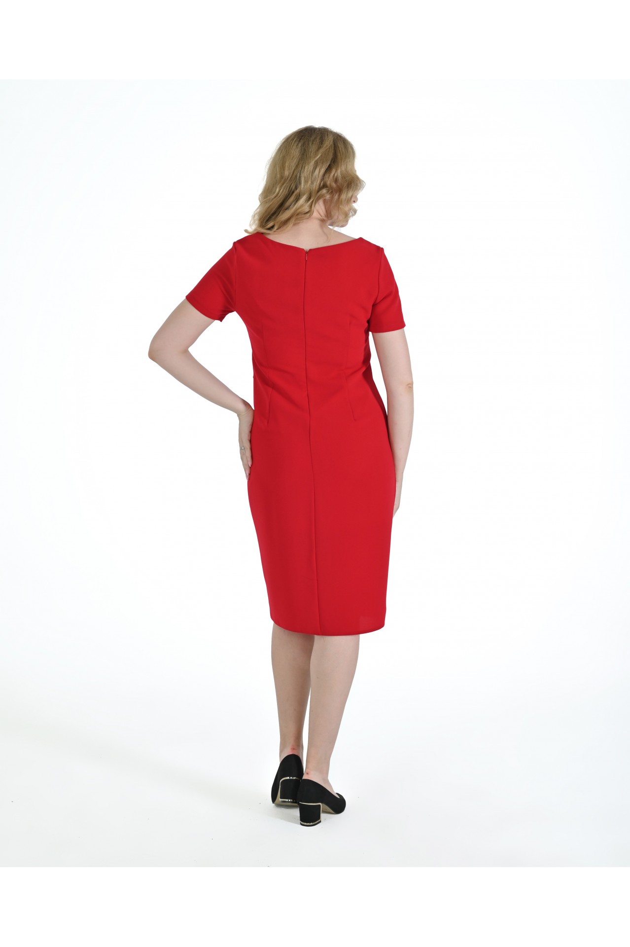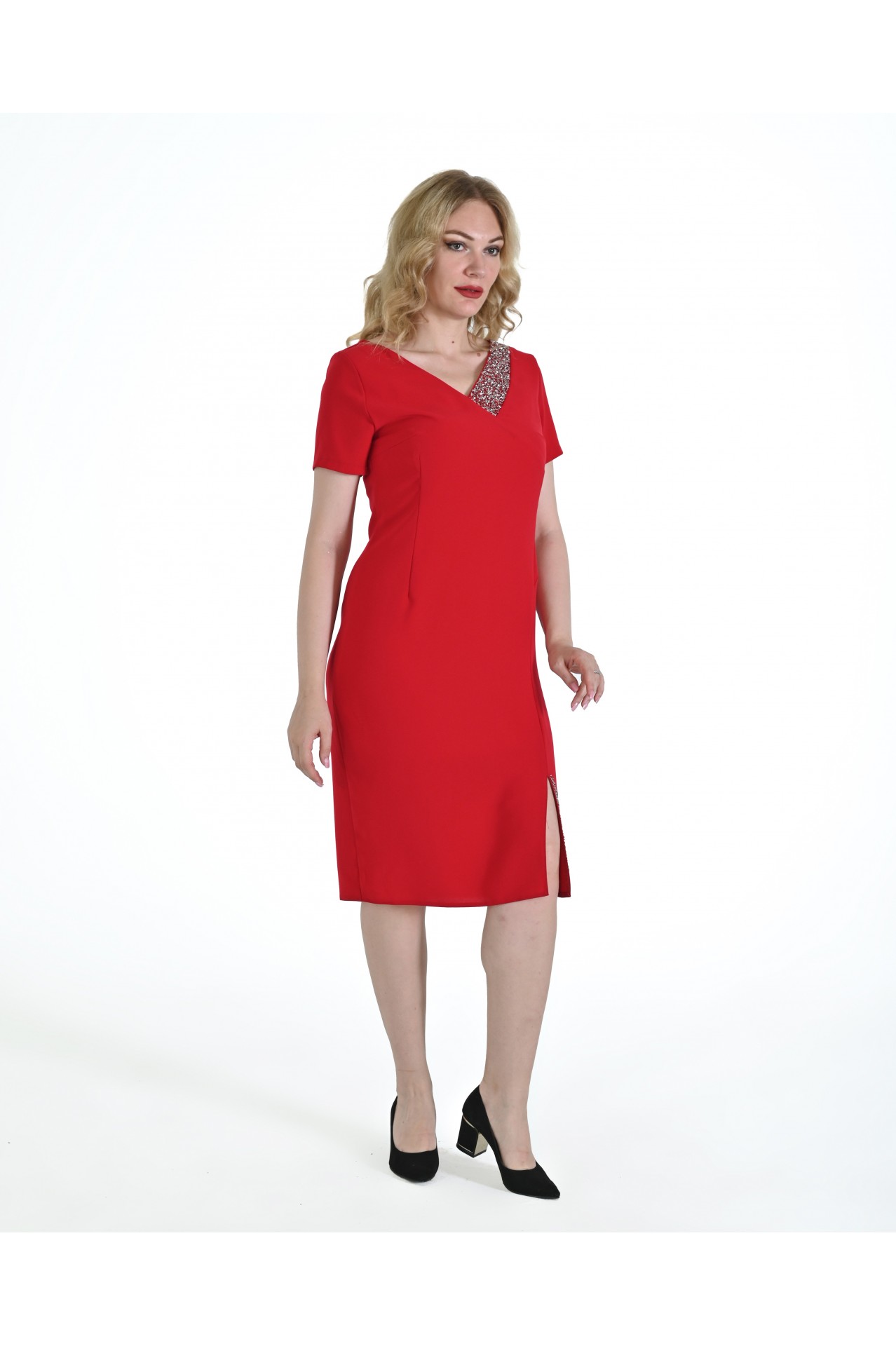 Yakası Ve Yırtmacı Baskılı Krep Abiye Elbise - Kırmızı