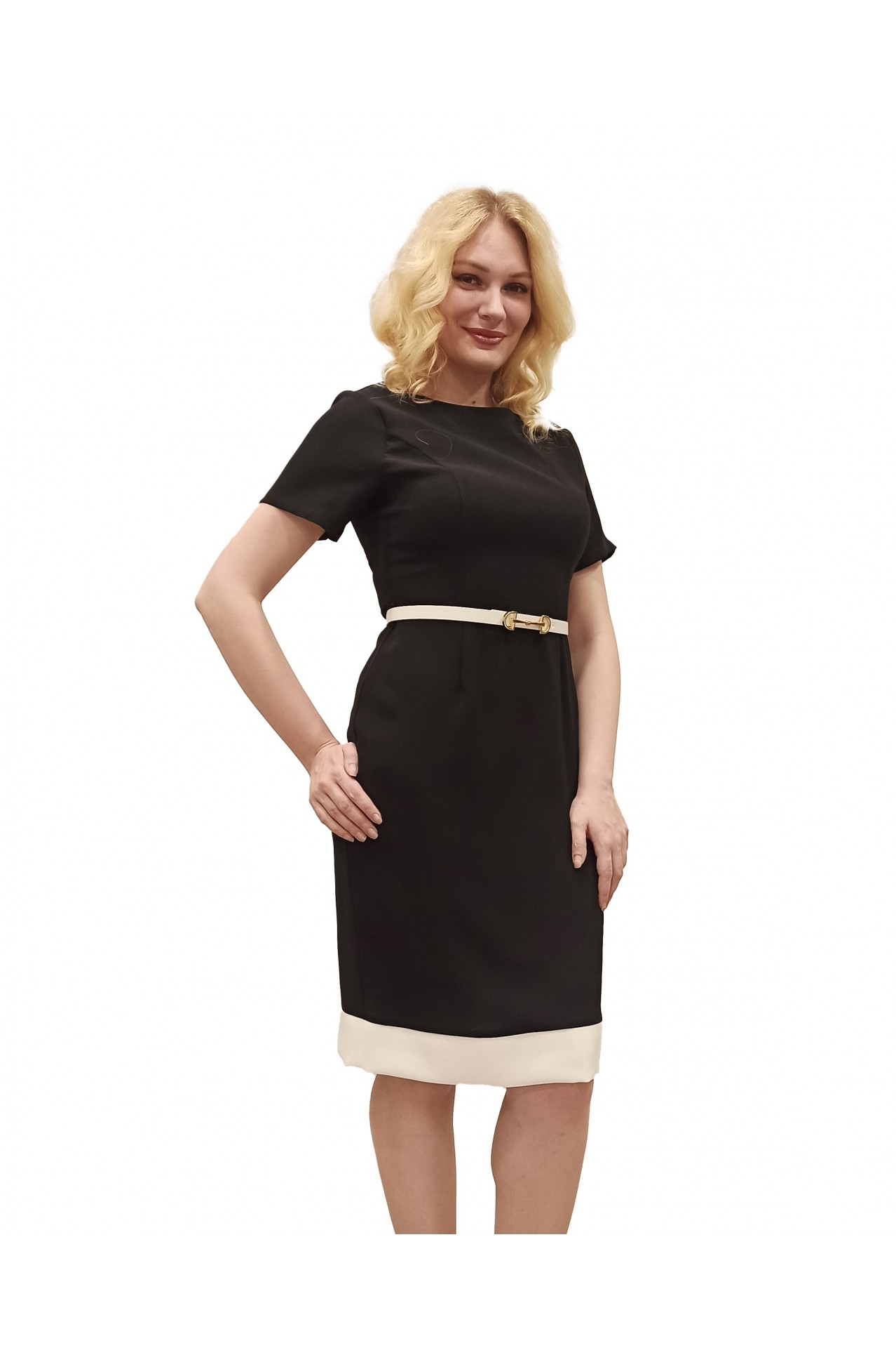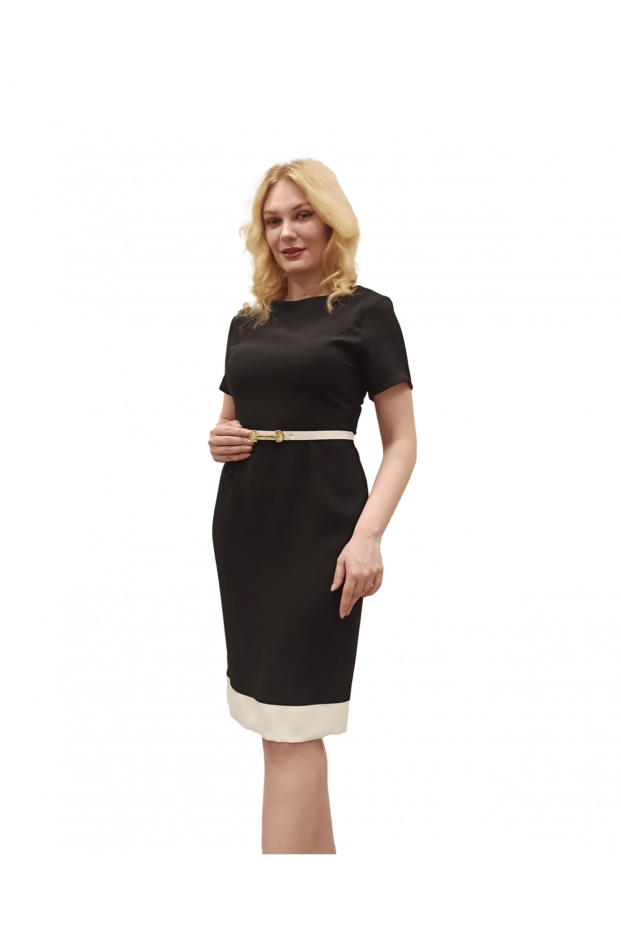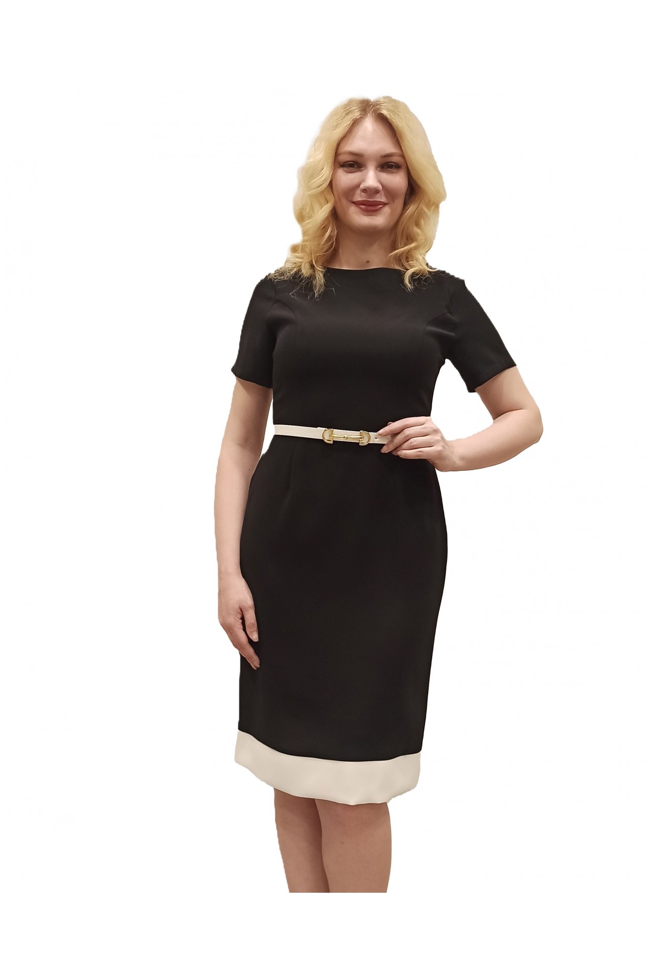 Etek Ucu Krem Bantlı Kemerli Suzanna Abiye Elbise - Siyah